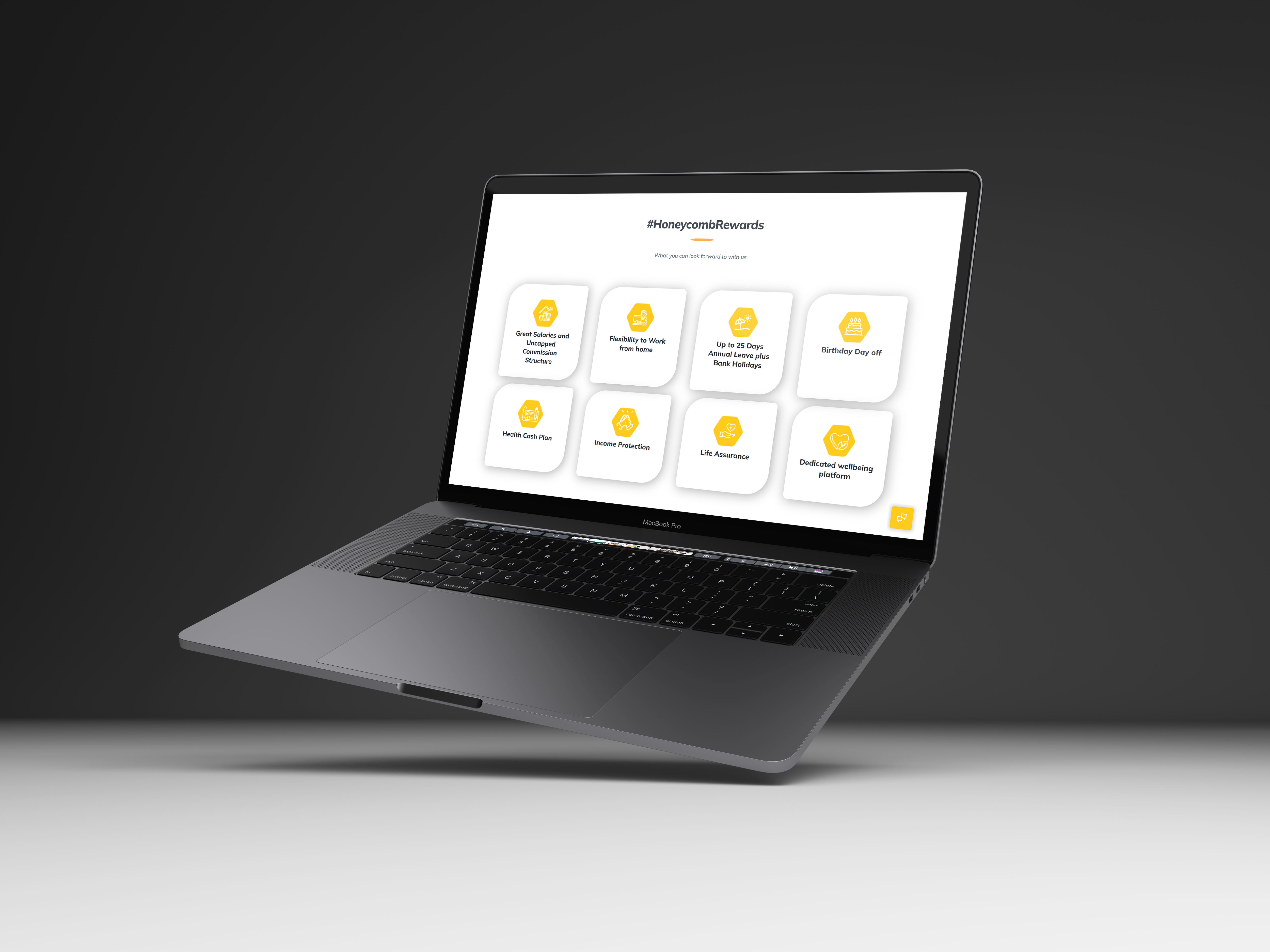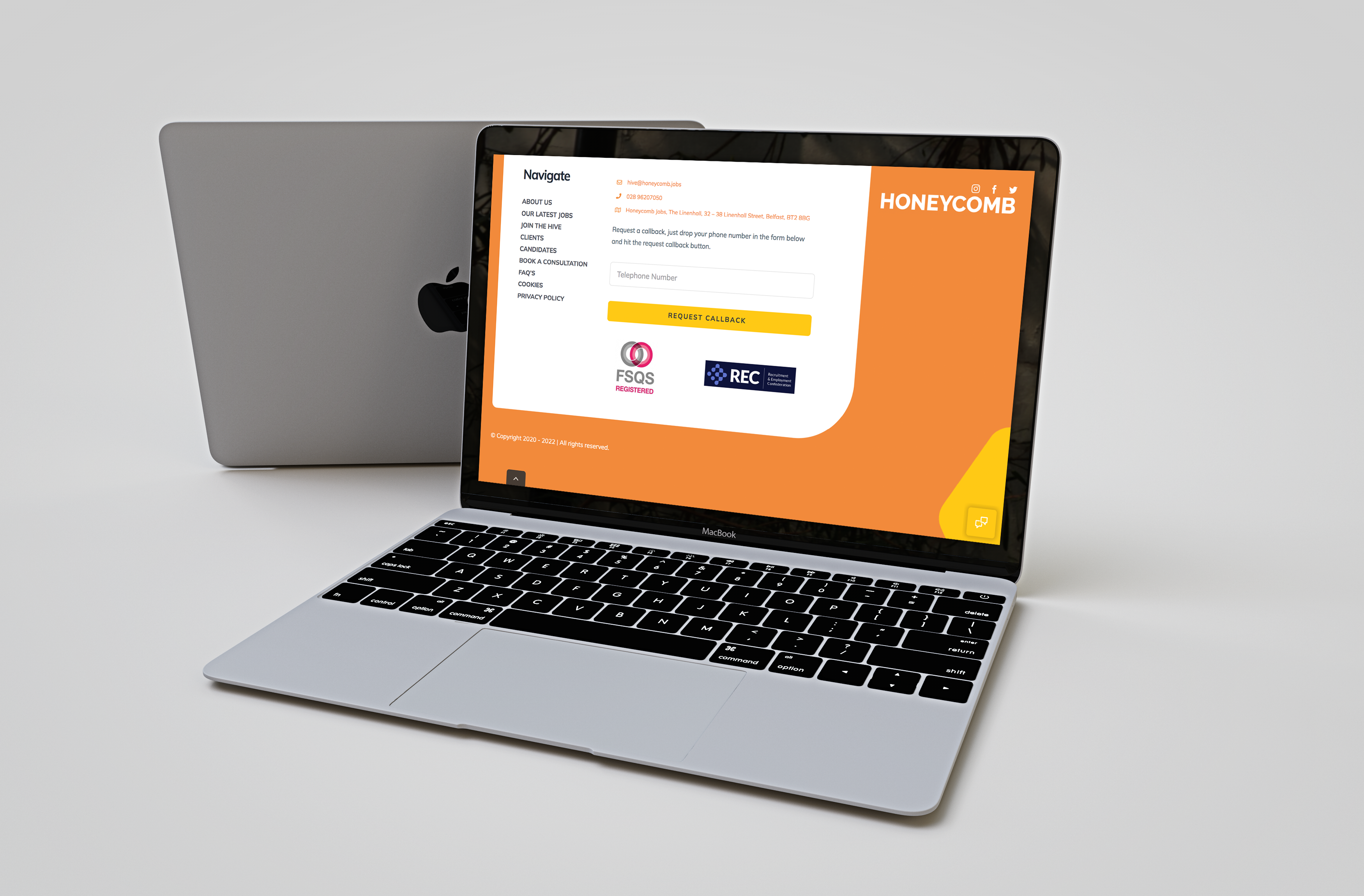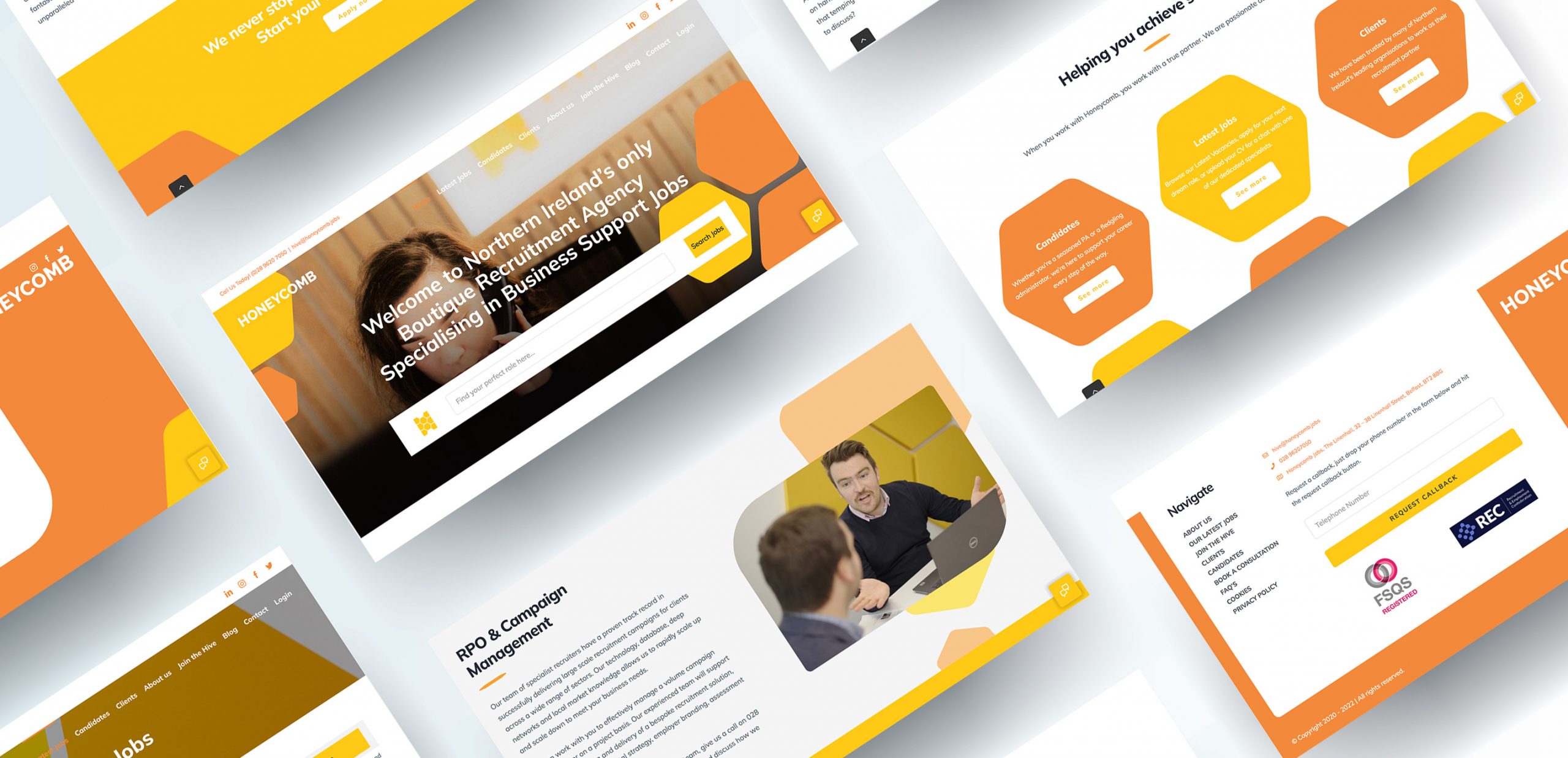 This was achieved through designing and building a brand new website with a focus on implimenting hexagonal shapes in Honeycombs brand colours. The newly created curved hexagons were used as accents to compliment the new content layout, which has been tailored to create a new, fresh and engaging website for potential candidates and clients to interact with.